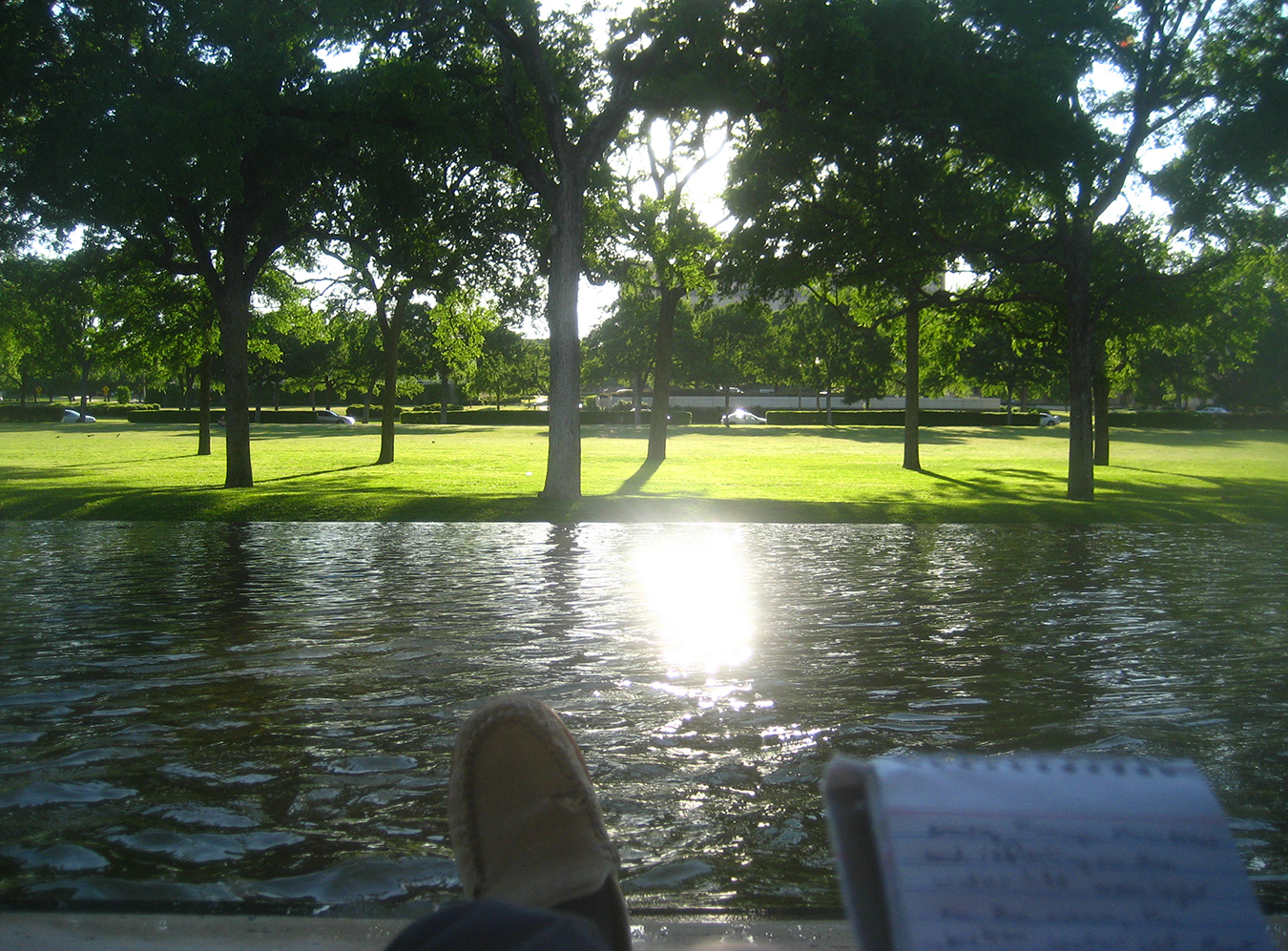 The interstate extends inordinate distances below the horizon in a concrete trench. From the south, like most plains cities, Fort Worth rises up slowly, almost endlessly. I hardly know where I am, or where I had just been. My thoughts are filled with the coalescing rubbish of the drive. The fringes of visual relationships between tangential stirrings limp along, occasionally locking into one another, until the whole is given sufficient power to speak aloud as one, through some physical corruption shared between that mess and my body.