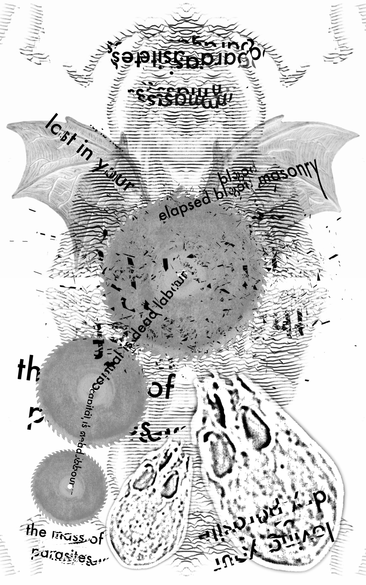 These two visual poems by James Knight are part of a wider series, titled Monster. These, named ‘Using Waste Bodies’ and ‘The Sea as a Metaphor for Death’, interrogate notions of the monstrous, as Knight explains. They “mix gothic tropes with cut-up-text from Karl Marx, Bram Stoker, social media and some of my own poetry.”