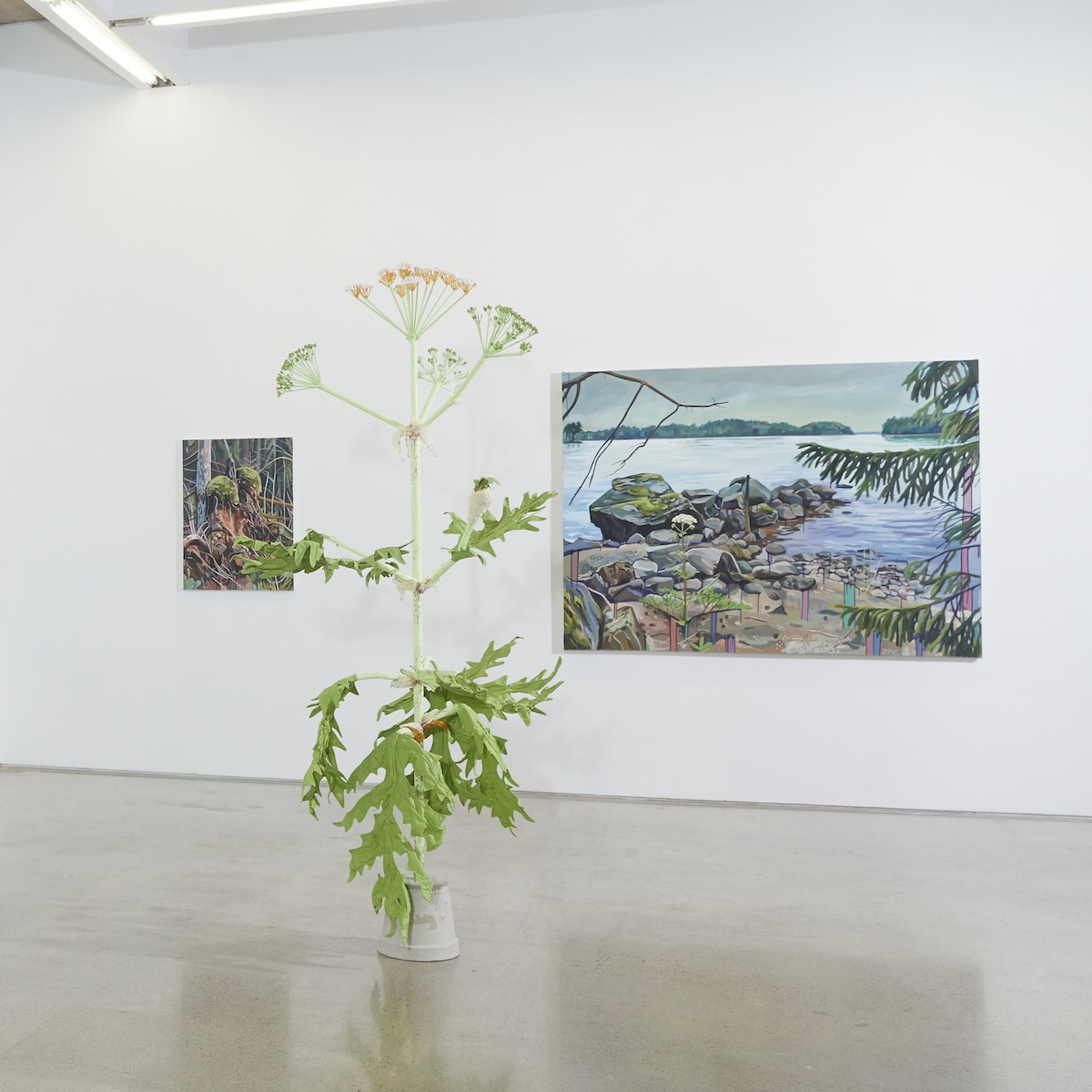 Cecilia Danell’s Giant Hogweed (2020) made its first public appearance at the Kevin Kavanagh Gallery in Dublin as part of her solo exhibition I Set a Bait for the Unknown. Through her paintings of the Scandinavian forest, the artist has constantly probed the nature of authenticity and the degree to which the idea of wilderness is constructed.. In these images, the distinctive shapes of giant hogweeds and wild angelicas are recurring motifs, so that her sculpture, when positioned alongside the paintings, appears like a three dimensional manifestation of them.